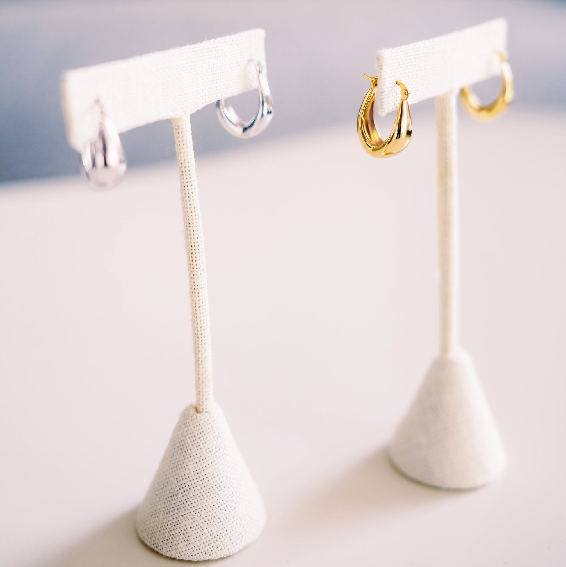 The Drop Earring will become your everyday statement piece. Designed with a secure click-on closure (no more lost earring backs!), these are lightweight yet durable enough to keep up with your busiest days. Crafted with 18K gold or white gold plating, they’re designed to shine without tarnishing. Sleek, minimal, and versatile, they add an instant touch of polish to every outfit